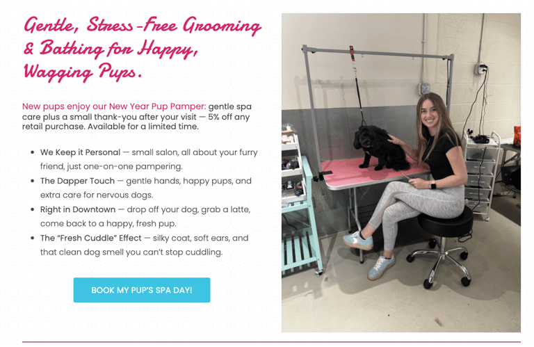 The Dapper Dog had a great in-salon experience but lacked consistent online demand capture.
